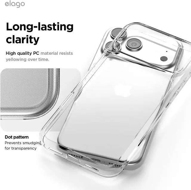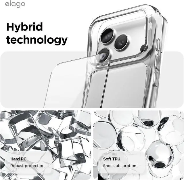 IN-HOUSE CRAFTED HYBRID PHONE CASE FOR PERFECT FIT Every elago Hybrid shell is sketched prototyped & tested under one roofno cookie-cutter moldsso it hugs your phone like a glove looks premium and stands up to daily abuse. DUAL-LAYER HYBRID ARMOR PROTECTION Rigid polycarbonate back + shock-absorbing TPU bumper team up to crush drops dirt dust & oily smudges for the iPhone 17 Series; an elevated camera guard keeps every lens crystal-clear for pro-level photos. CLICKY AND RESPONSIVE BUTTONS - Covered keys stay satisfyingly responsive while blocking debris; made with the perfect material to complement your phone and case! RAISED EDGE LIP DEFENSE Raised bezel lifts screen and lenses off rough surfaces stopping scratches before they start; protection starts in the smallest details.