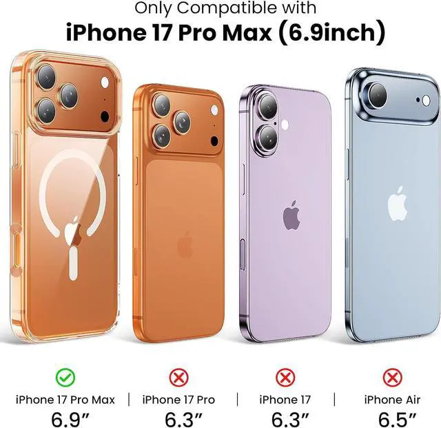 Slim Design & Comfortable GripThe Magnetic Case for iPhone 17 Pro Max is designed to be slim and lightweight making it easy to carry in your pocket and use with one hand. The Processed TPU frame Provides a delicate touch feeling and non-slip grip. Only designed for iPhone 17 Pro Max ( 6.9 inch)