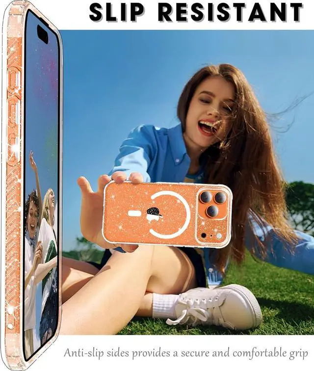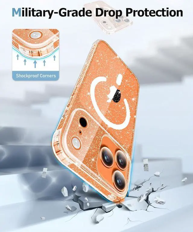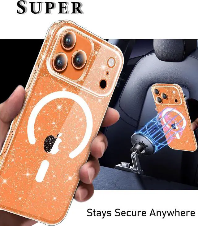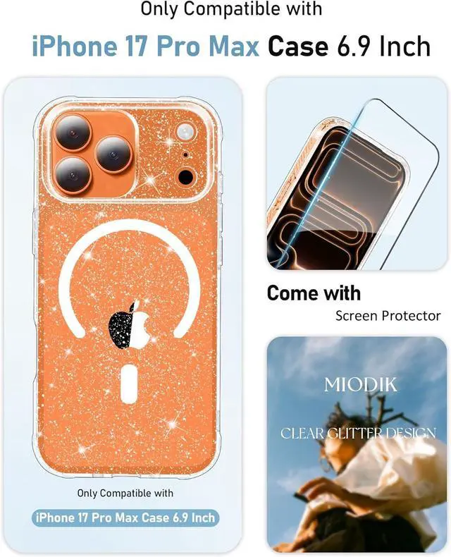[Compatibility] Only Compatible with iPhone 17 Pro Max Case featuring advanced MagSafe magnets for a secure hold precise alignment with chargers and accessories and effortless attachment and removalall while maintaining full phone functionality[Military-Grade Protection] Combines a shock-absorbing TPU bumper + durable PC backplate and 4-corner bumper technology to dissipate impact. Raised bezel for camera protection included tempered glass screen protector for crack/shatter resistance[Long Lasting Glitter] Eye-catching Glitter particles are sealed in a durable anti-yellowing clear layer that resists fading and peeling keeping your case long-lasting clear sparkle while showcasing your phone's original color[Excellent Grip & Portability] The clear sparkle iPhone 17 Pro Max case designs an anti-slip sides providing enough grip but not sticky.