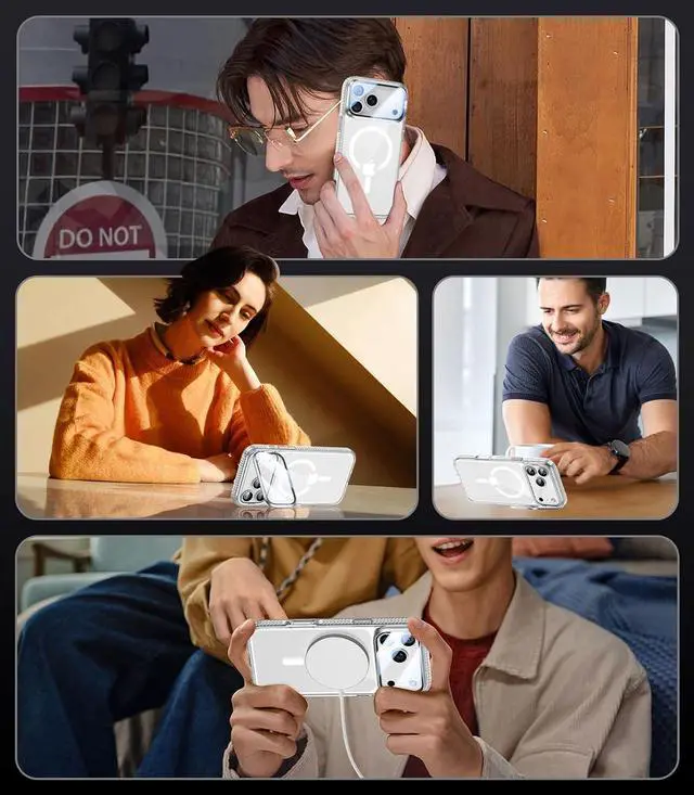 .. Moreover the sturdy kickstand structure is tested to be durable enough for up to 6000 times of use and it is 0-138° adjustable for a comfortable view. Ultra Strong Magnetic PowerThe magnetic iPhone 17 Pro Max is compatible with all MagSafe accessories. With a built-in magnetic ring that perfectly aligns with MagSafe accessories this iPhone 17 Pro Max magnetic case offers seamless attachment and faster wireless charging. And thanks to the embedded 38 N52 strong magnets this iPhone 17 Pro Max case magnetic is tested to have 200% stronger magnetism than other magnetic cases.
