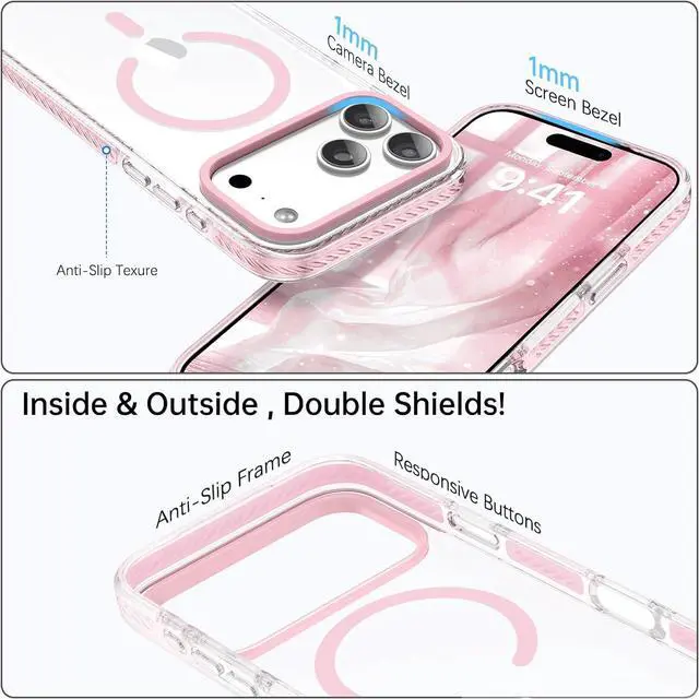 Protection: Passed Military Drop Test up to 10FT this clear iPhone 17 Pro Max case is made with a rigid polycarbonate back and flexible shockproof TPU edges to protect your phone from bumps and scratches. A 1mm raised camera edge and 1mm raised screen edge provide extra protection for your iPhone 17 pro max Magsafe caseCrystal
