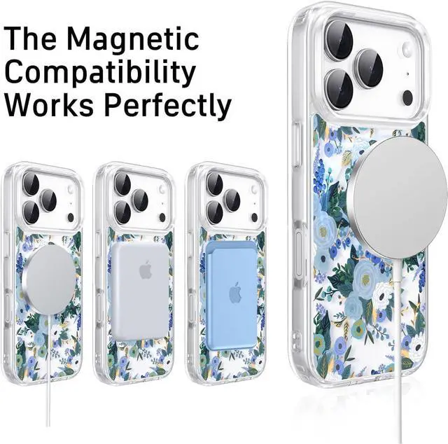BLUE FLOWERS DESIGN: This phone case is designed with a cute style pattern. The design is high-end complementing a variety of phone colors perfectly and the material has been specially treated to ensure lasting color preventing it from fading over timeMAGNETIC