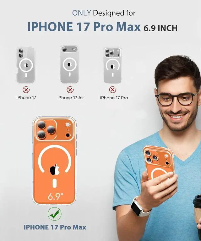 [Compatibility] Case ONLY compatible with iPhone 17 Pro Max 6.9 Inch with accurate cut-outs easy to install and remove. Smart automatic alignment gets the phone cover applied flawlessly and no worry about air bubbles. [360° Full Body Protection] Provides complete front and back coverage including four anti-shock corners raised screen & camera bezels and anti-slip sides. Military-grade protection to withstand drops scratches and slides. [Built-in Screen Protector] The front case is made of a sensitive built-in screen protector and a shockproof front frame to keep out dirt and moisture without compromising touch sensitivity. Raised camera bezel ensures that every lens is protected from scratches.
