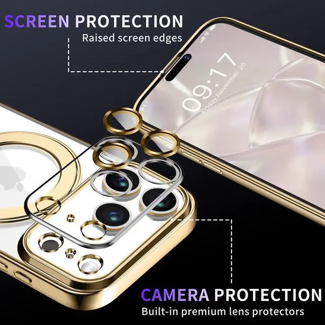 The silicone frame adopts air bag deppgn which can effectively disperse the vibration caused by accidental impact. The edge camera and magnetic ring are all electroplated to keep a bright metallic appearance that never fades or peels.