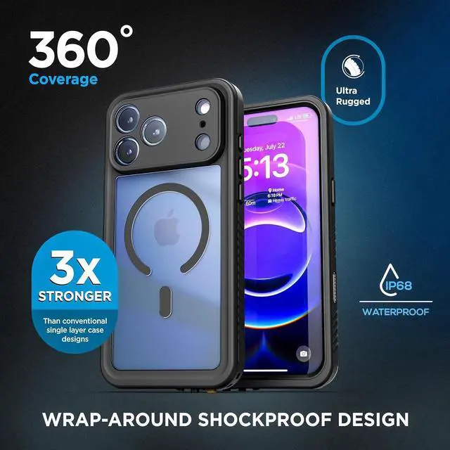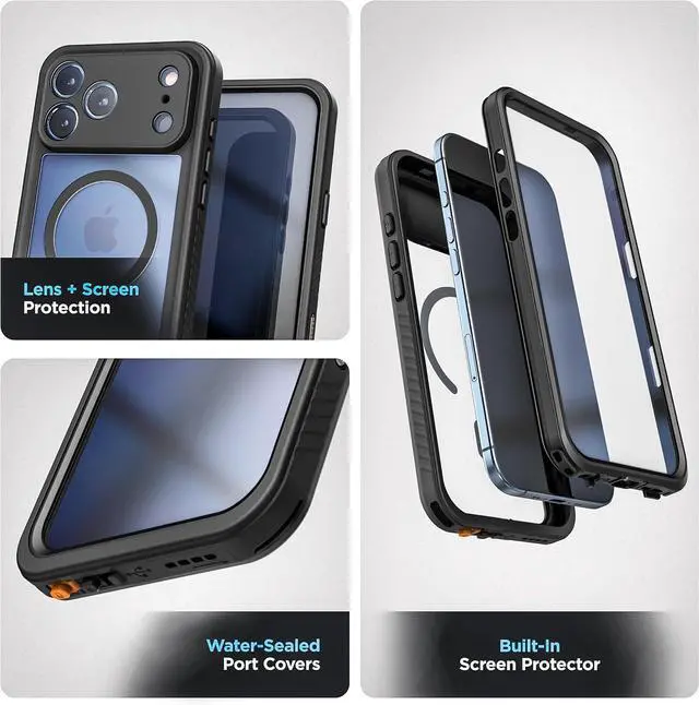 Built for adventure: The Titan Waterproof case is your phone's ultimate outdoor companion. (Compatible with iPhone 17 Pro Max) The IP68 submersible enclosure is rated for extreme shock and impact resistance and 15 FT drop tested for unparalleled protection against the elements. Touch sensitive camera control button maintains full functionality of the scroll and capture features while keeping your device fully enclosed. Integrated mic cover locks securely in both the open and closed positions for unmuffled audio pass-through when you need it and a watertight seal when you don't.