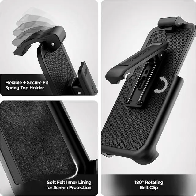 Clip Holster: The included belt holder features a secure-fit reinforced top latch and a solid polycarbonate core for ultimate durability. The 180-degree rotating clip allows for convenient vertical or horizontal carry.