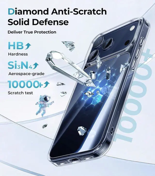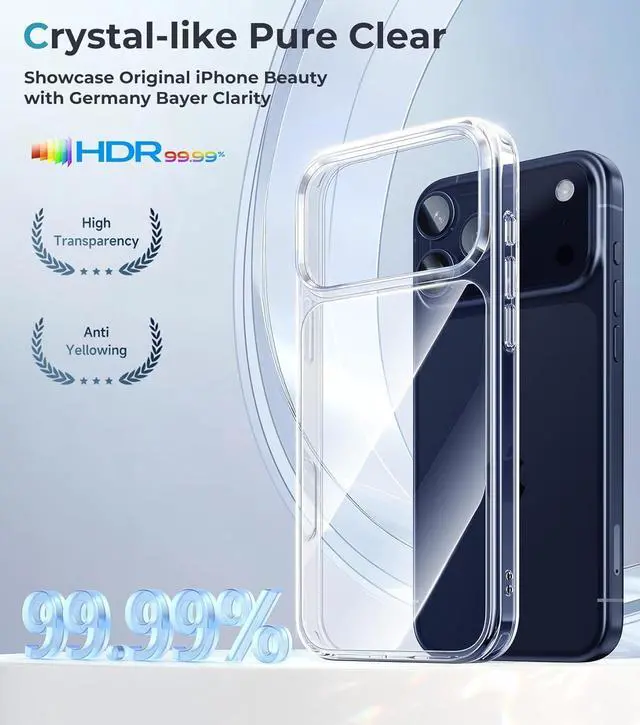 Germany Bayer Clarity: Original iPhone Showcase Maledan anti-yellowing clear case for iPhone 17 Pro Max blocks UV damage and chemical stains (coffee/sunscreen). Bayer material help resist yellowing 4X longer than basic cases German nano-coating tech repels sunscreen/oil stains No yellowing no tint just pure iPhone eleganceDiamondStrong