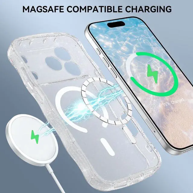 MagSafe Accessories: Our wavy iPhone 17 pro max phone cover is built-in strong Magnetic will not fall off no matter how it rotates without signal influence. Support all kinds of magnetic accessories like magsafe magsafe wallet magnetic car mount.