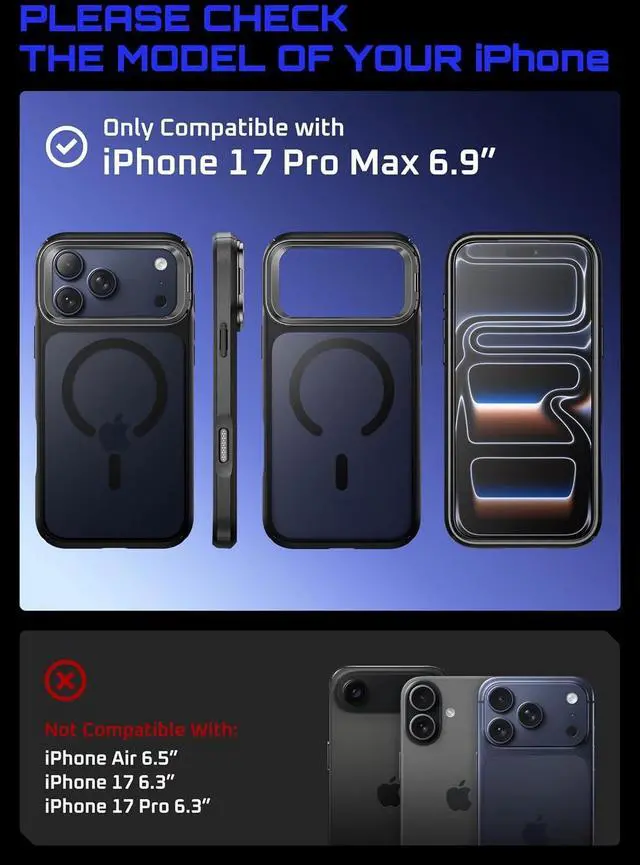 Engineered for ultimate protection. Survives accidental drops up to 15 ft ( 4.5 m) with military-grade impact resistance (MIL-STD-810H- 516.8 certified). Reinforced TPU + PC hybrid design four corner airbags and a solid zinc alloy camera frame provide maximum defense. Precision-raised edges ( 1.5 mm lens lip 2 mm screen lip) add extra protection. Designed for comfort and security. Textured side edges improve grip and control helping prevent accidental drops[Compatibility]: Compatible with iPhone 17 Pro Max 6.9 inch (2025 Release) ONLY.
