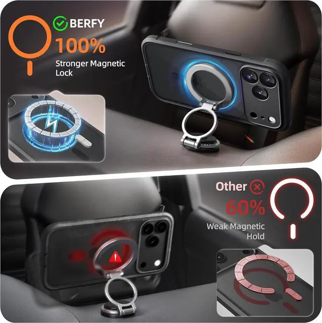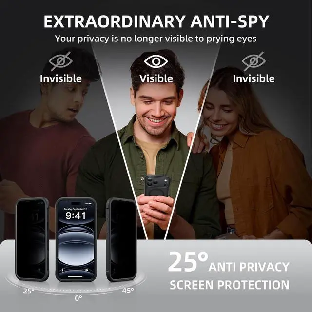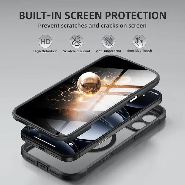 [Built-in Privacy Screen Protector] BERFY for iPhone 17 Pro Max case with built-in privacy screen protector that protects your phone screen and personal information wherever you go while also providing protection against drops and scratches[Strong Magnetic Attraction] This magnetic 17 Pro Max case equipped with powerful magnets for secure lightning-fast charging. It stays securely attached even during vigorous movement. Fully compatible with MagSafe accessories like magnetic wireless power banks wallets car mounts and more[360°Full-Body Protection] The 17 Pro Max phone case is designed with dual-layer glass front and back cover that provides 360-degree full-body rugged protection against scratches and impact damage.