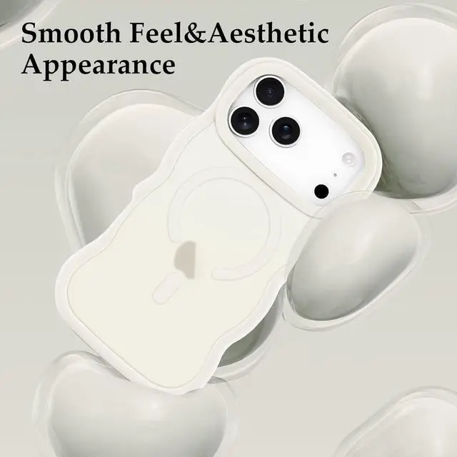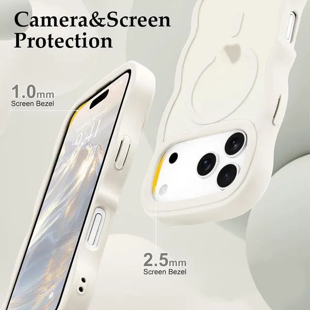 [Curved Wavy Edge Design]Featuring a charming wavy bezel this neutral phone case adds a touch of elegance and style. The gently curved edges enhance grip and ensure a comfortable hold striking the perfect balance between fashion and functionality. [Screen and Camera Protection]The raised edges around the screen and camera provide robust protection by keeping them lifted off flat surfaces. This design minimizes the risk of scratches and damage ensuring your phone remains pristine. [Stylish Translucent Matte Design]The translucent matte back not only prevents from becoming dirty or yellow but also subtly showcases your phone's brand logo adding a touch of luxury.