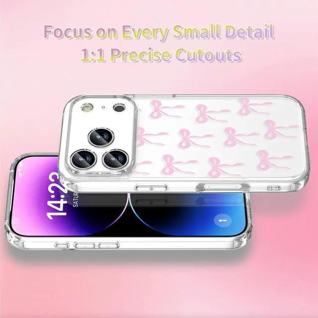 CompatibilityCompatible with iPhone 17 Pro Max 6.9. The package include 1 pack clear phone case + 1 pack tempered glass screen protector + 1 pack cleaning kitCute Bow PatternsLaser-printed bow patterns with embossed texture resist peeling and discoloration maintaining vibrant colorsturn your phone into a cute fashion accessoryAlways Crystal ClearUltra-thin TPU material showcases your phone's original beauty. Yellowing-resistant design stays transparent for yearsFull Camera Lens ProtectionSealed lens design (vs 90% hollow-cutout cases) with 1.5 mm raised edge blocks sand/key scratches. Dual-layer shockproof edges against 6ft drops absorbing shocks and guarding against drops scratches and lens/corner impacts.