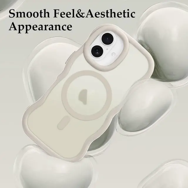 [Curved Wavy Edge Design]Featuring a charming wavy bezel this neutral phone case adds a touch of elegance and style. The gently curved edges enhance grip and ensure a comfortable hold striking the perfect balance between fashion and functionality. [Screen and Camera Protection]The raised edges around the screen and camera provide robust protection by keeping them lifted off flat surfaces. This design minimizes the risk of scratches and damage ensuring your phone remains pristine. [Stylish Translucent Matte Design]The translucent matte back not only prevents from becoming dirty or yellow but also subtly showcases your phone's brand logo adding a touch of luxury.