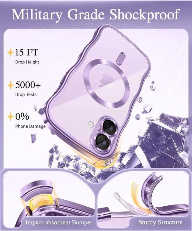 Polished & Stylish Wavy Frame: The back panel is crafted from hard and highly transparent PC that resists deformation and yellowing showcasing your phone's original beauty. The wavy frame made of soft and skin-friendly TPU with an electroplating finish provides a secure and comfortable grip with a stylish luxurious touchUpgraded