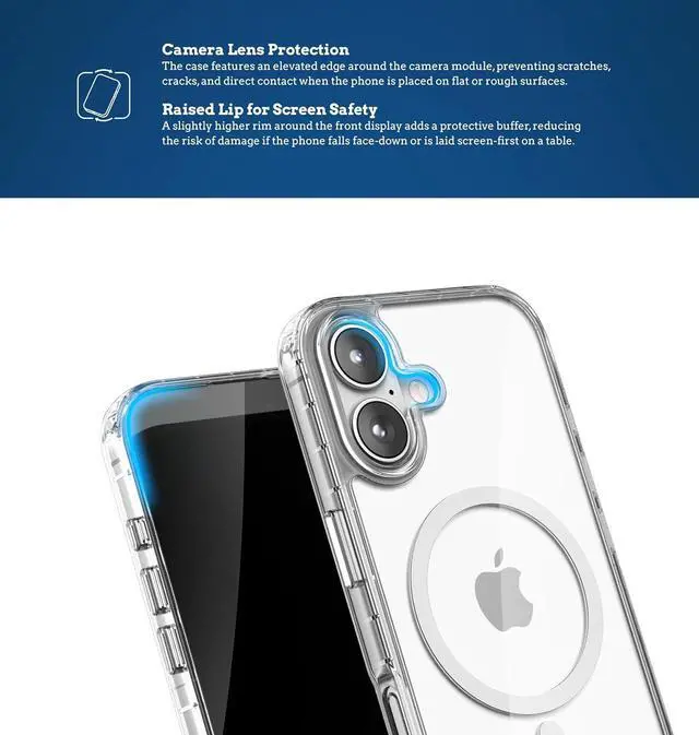 Integrated magnetic strip compatible with MagSafe for secure snap-on chargers wallets and mounts. Clear TPU bumper is slim flexible and shock-absorbent to cushion everyday drops without bulk. Raised bezels & reinforced camera guard help keep the screen and lenses off flat surfaces to reduce scuffs. Anti-yellow scratch-resistant materials preserve long-lasting clarity; grippy sides for a confident hold. Tactile buttons & precise cutouts; wireless-charging friendly and screen-protector compatible for the iPhone 17 series.