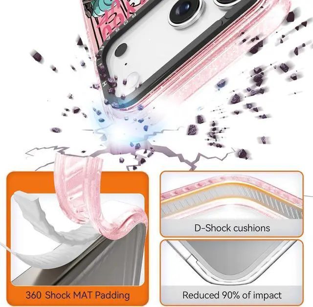 6.6 ft Drop ProtectionThe Rosarnnah case for iPhone adds TPE shockproof material to provide drop protection up to 6.6 feet. At the same time the edge of the Rosarnnah protective case is 1.9 mm higher than the iPhone screen and the four corners of the back also have ridges to prevent scratches. No need to worry about any drops and friction in daily use. Better PerformanceRosarnnah case is made of anti-yellow material and new generation printing technology to ensure durability during daily use. We provide 12 months of free after-sales service for this (you need to actively register to activate the service).