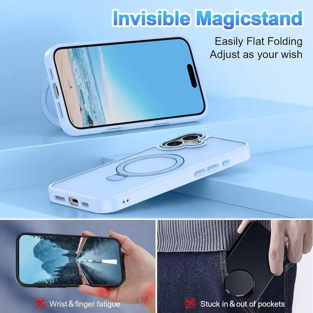 Invisible Magnetic Kickstand: The stand is practical and multifunctional which can be adjusted between 40°-120° for a stable convenient viewing experience and doubles as a ring holder.