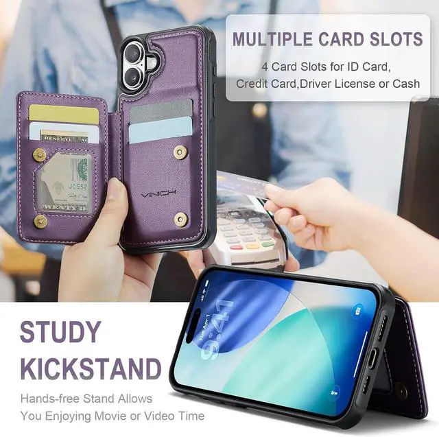 Card Holder: The case for iPhone 17 is designed with card slots. Its easy to hold and remove so you dont need to take bulky purse to outdoor; This case is suitable for all ages of women & menCamera &