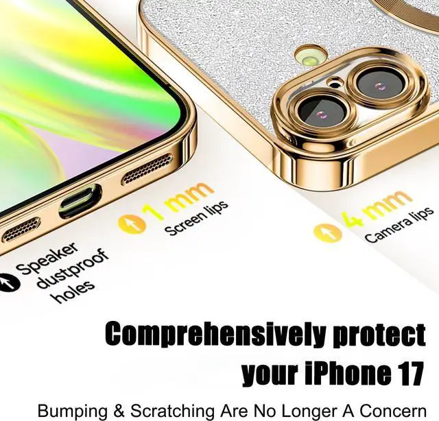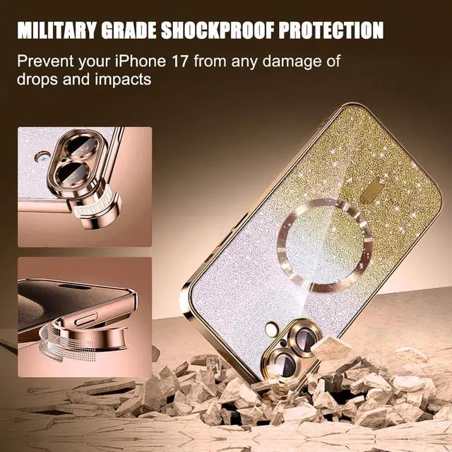 Compatible WithOnly for iPhone 17 6.3 inch 2025 Compatible with Magsafe Charging with gradient color design on the back you can remove it as a transparent case to get two experiences at one time. Fashionable and Magnetic Strips DesignLuxury electroplate plating edge makes your iPhone 17 Special Lovely Fashion Cool. The built-in magnetic ring can strengthen the magnetic connection to be compatible with all MagSafe accessories and supports high-speed wireless charging. Full Camera ProtectionThe protective case specially designed for cell phone with HD Camera Lens Protector [ 9H Hardness ] super shine exceptionally in the sun or light catch your eye and also give your phone a luxury look.