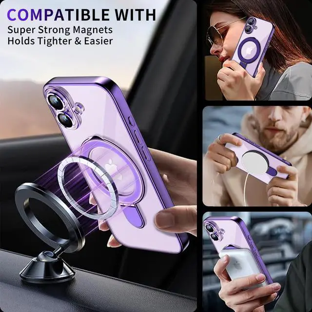 Perfect Compatibility & Never Yellowing It's designed specifically for iPhone 17 6.1 inch with precise cutouts for easy access to all buttons speakers cameras and charger slot. The buttom upgrade protection of built-in dustproof net. The back is crystal clear and transparent using imported German Bayer and polycarbonate yellow resistant pigments which can truly achieve strong anti-yellowing and allow the genuine color to shine through. Brand-New Invisible Magnetic Stand iPhone 17 case combined the strong magnetic with a foldable stand which can prevent MagSafe accessories from falling. Upgraded N52 strong magnetic stand the magnetic suction force has been increased to 18 N.