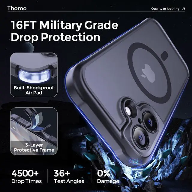 Survived 4 500+ drop tests with multi-layered shock absorption. Protects from falls up to 16 feetideal for clumsy handsAnti-Scratch Matte Finish + Ergonomic Grip Smudge-proof fingerprint-resistant texture repels dirt while adding comfort. Slim design with textured edges for secure one-handed useLifetime Shield Guarantee Military-grade tested case backed by 24/7 U. S. support. Cracked? Scratched? Damaged? We replace it no fine print no wait. Your iPhone armor gets lifetime reinforcements