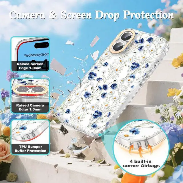 Floral Design: This elegantly feminine case lets your phone's natural color show through perfectly never covering up its beauty. The floral design look like dimensional printed securely on the inside of the case without yellowing or fading ensures there will not be any damage or scratches to the design itself. This design creates a classy girly aesthetic style for women and girlsAll-round