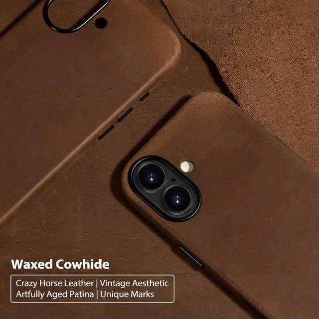 Effect: Handcrafted from full-grain waxed Crazy Horse leather sourced from the USA each case is naturally one of a kind. The leather features a visible grain rich texture and a natural two-tone finish that shifts with use and wear. Lined with soft microfiber to protect your phone from the inside out. Aged to Perfection -