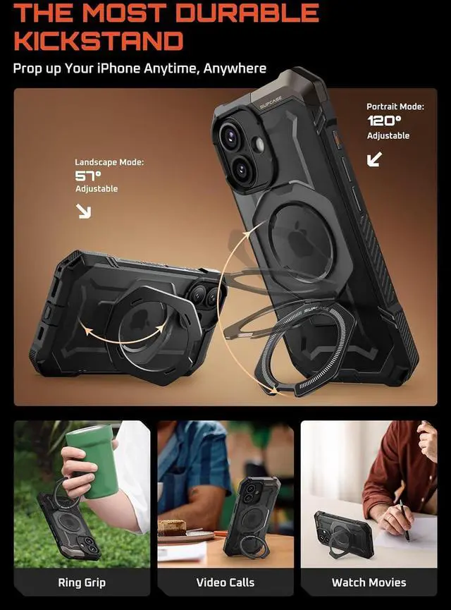 [Kickstand & MagSafe Features]: Built-in aluminum alloy kickstand provides multiple viewing angles. N52 strong magnet with up to 1800g magnetic force ensures seamless compatibility with MagSafe accessories.