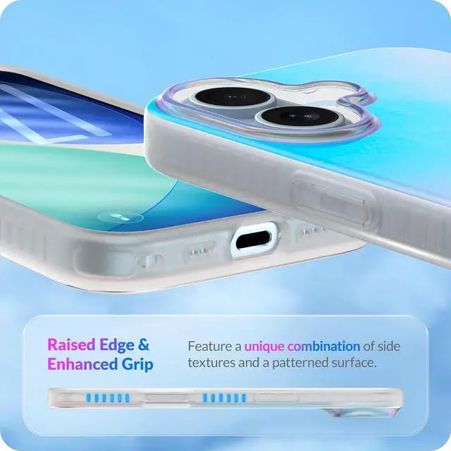 **ONLY compatible with iPhone 17. As light and angles change the case reveals a beautiful display of vivid hues and iridescent tones. The inner shock-absorbing bumper protect your new phone from up to 10-feet drops. Raised edges protect camera and screen from scratches and drops. Camera Control charging port and buttons work flawlessly.