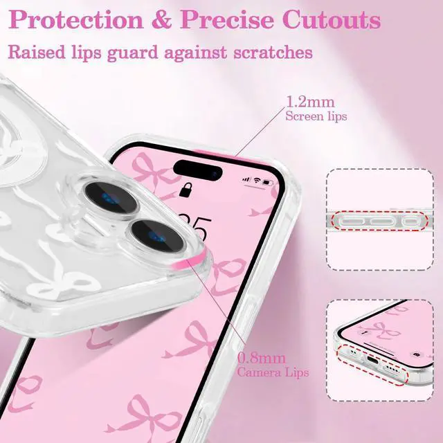 Material: This cute case is made of high quality TPU which is tough to withstand daily bumps and scratches; our bows phone case looks slim and light comfortable to hold; Pretty transparent case is the best gift for women and girlPretty