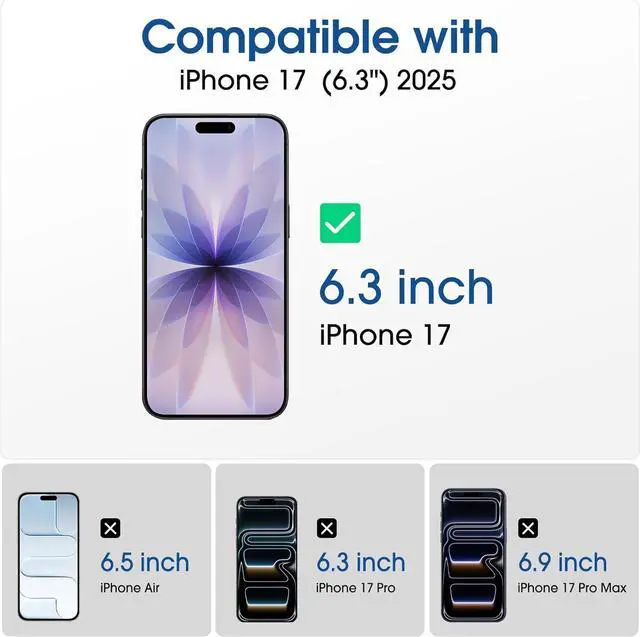 After testing they effectively prevented 99.99 % of fingerprints caused by sweat and oil stains. Ultra-Clear and Ultra-SensitiveOur iPhone 17 2025 screen protector uses high-quality materials and advanced coating technology to provide a clear visual experience ensuring smooth screen touching and sensitive response. Whether swiping tapping or gaming you can enjoy a seamless experience without delay or lag. Screen Protector Compatible with iPhone 17 2025 6.3 Specially designed ONLY for iPhone 17 2025 6.3. Not compatible with any other iPhone models.