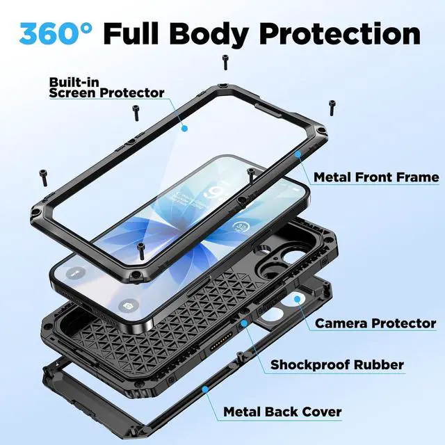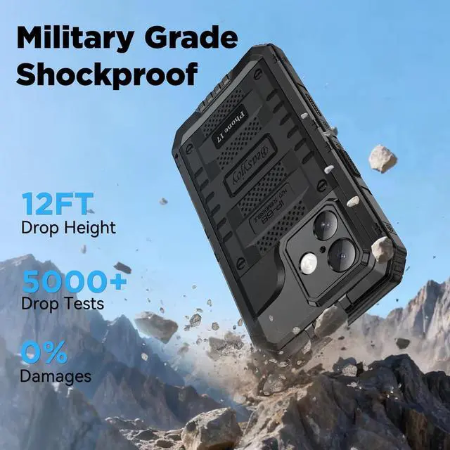 IP68 Waterproof Metal CaseIP68 certified iPhone 17 case provides supreme sealing protection submersible to 10ft for 1 hour. Built-in camera control button enables underwater photography swimming and fishing. Includes lanyard for secure carrying during all adventures. Military Grade ShockproofThis iPhone 17 waterproof case meets MIL-STD-810H standards to survive drops from up to 6ft. The 4-layer armor structure has been tested to withstand thousands of impacts. Ideal for construction logging and extreme outdoor sports requiring ultimate durability. 360° Full Body ProtectionBuilt-in HD screen protector prevents scratches while maintaining touch sensitivity. Raised screen and camera bezels add extra protection keeping your iPhone 17 safe from all angles.