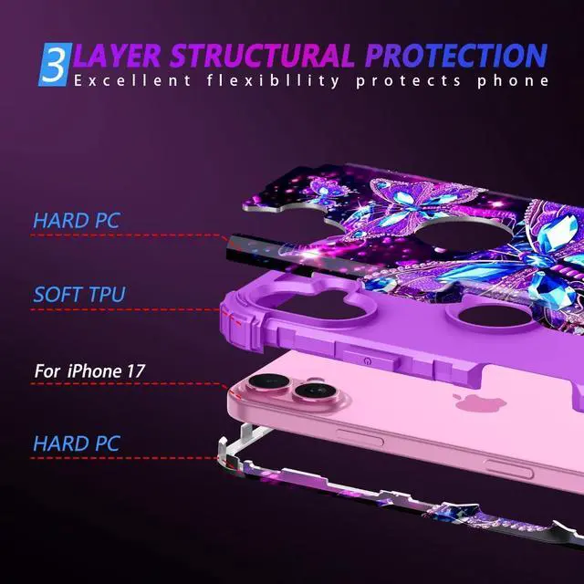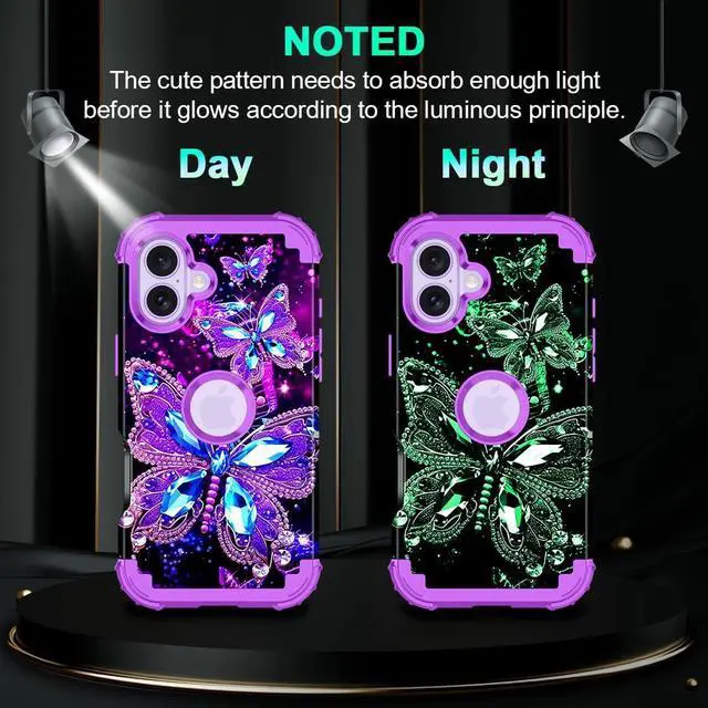 CompatibleOnly Compatible with iPhone 17 6.3 inch 2025 Release Case NOT fit for any other phone models. Precision cutouts for easy access to all ports buttons sensors and cameras. The unique ergonomic design makes independent buttons feel sensitive and easy to press with good touch. (Without screen protector) Glow and Shiny in the Dark PatternThe charming pattern in the hard back PC cover makes your iPhone 17 look much more eye-catching and attractive. The case will glow in the dark after absorbing enough light under the sun or other light sources so that you can easily find your phone at night.