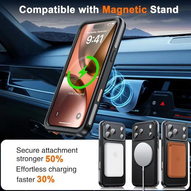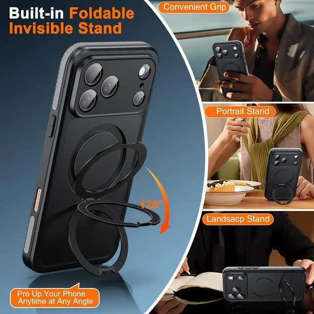 Unique shock-absorbing design 4 anti-collision corners effectively absorb and disperse 99% of the impact force. Magnetic Invisible KickstandCompatible with MagSafe accessories strengthened by Aerospace-Grade Aluminum this iPhone 17 Pro Case with magnetic stand allows your phone to stand up with ease. Folded up flush with the back without being bulky you will feel silky touch when touch the back. Completely free your hands and the embedded kickstand is pocket-friendly and avoids the embarrassment of your phone getting stuck in your pocket. Built-in Sensitive Screen Protector&HD Camera ProtectorComes with high touch sensitive screen protector fitting for the phone screen snugly without any bubbles you can typing scrolling screen and use other Apps as usual.