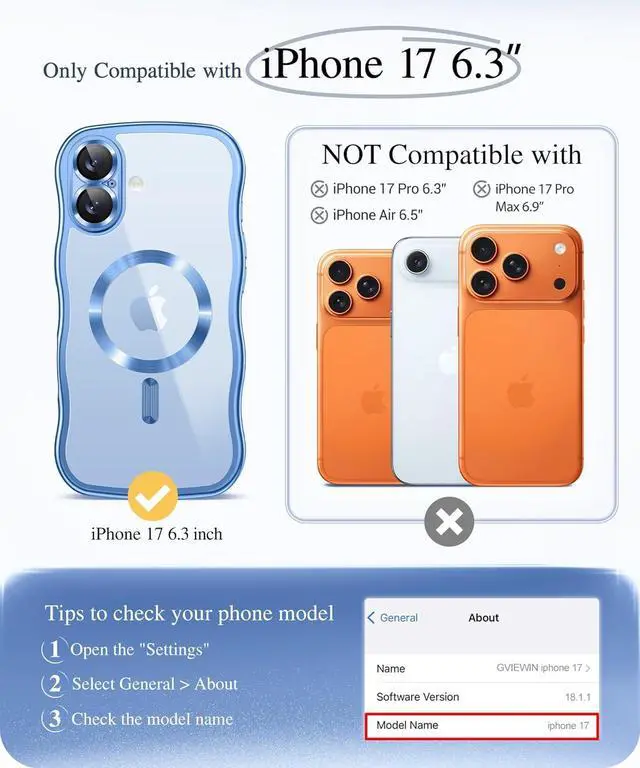 Compatibility & Replacement Guarantee: Only compatible with iPhone 17 ( 6.3 inch 2025 Release). For issues like defective case used box wrong model stained color or damaged items please contact us via Message Center Your Orders Click the Detail Page of the Product You Purchased Click GVIEWIN Ask a QuestionEnhanced