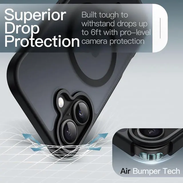 NOTE: Not for iPhone Air / 17 Pro / 17 Pro Max[Super Magnetic Adsorption] Strongly attach to the charger magnetically. Once snap on never sliding. Compatible with MagSafe accessories such as wallet ring holder and power bank[Translucent Matte Back] The case back is coated with frosted material comfortable in hand resistant to annoying smudges like fingerprints oil residue. Also you can still admire the delicate logo of your device[Shockproof & Protective] Made of flexible TPU frame and anti-scratch PC back highly defend your device against severe shocks and drops. The streamlined edge design shows a fashionable texture easily slipping into your pocket for convenient and elegant portability[Camera & Screen Safeguard] The raised edges effectively protect the screen and camera against surface scratches when you put your phone horizontally. Moreover aligned cutouts allow full access to all features and controls