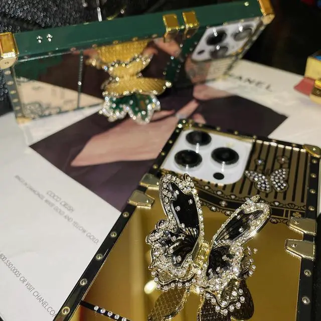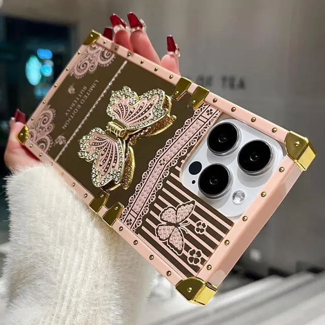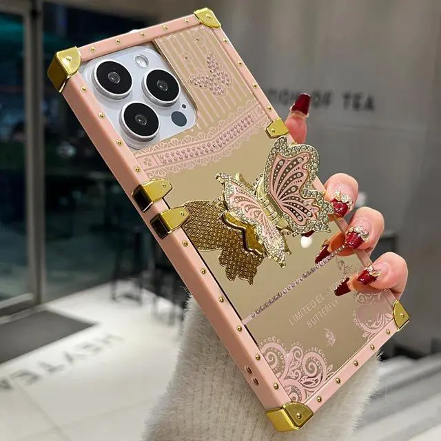 Note: The kickstand can't be rotated. [Better protection ] Enhanced Drop Protection soft TPU Bumper and Hard PC as back cover and four Golden plating plated metal decoration Reinforced corners as the bumper frame provides a better protection for your phone. The back can bear strong strike and shock from outside without any scratch four corners can absorb the shock well when drop accidentally. [Chic flower & Mirror Patterns] Made with a unique printing technique these lace butterfly flower patterns wont rub off fade or smudge. This luxurious Case is featured with a stylish shape used as Elegant Luxurious make up mirror making your phone Fashionable and unique. Specially designed for the girls women. [Precise Cutouts] Suitable for iPhone Pro Max 5G Cover Case All buttons and interface Humanized design avoid frequent disassembly. The Silicone Case offers precise cutouts for the speaker camera and charging hole.