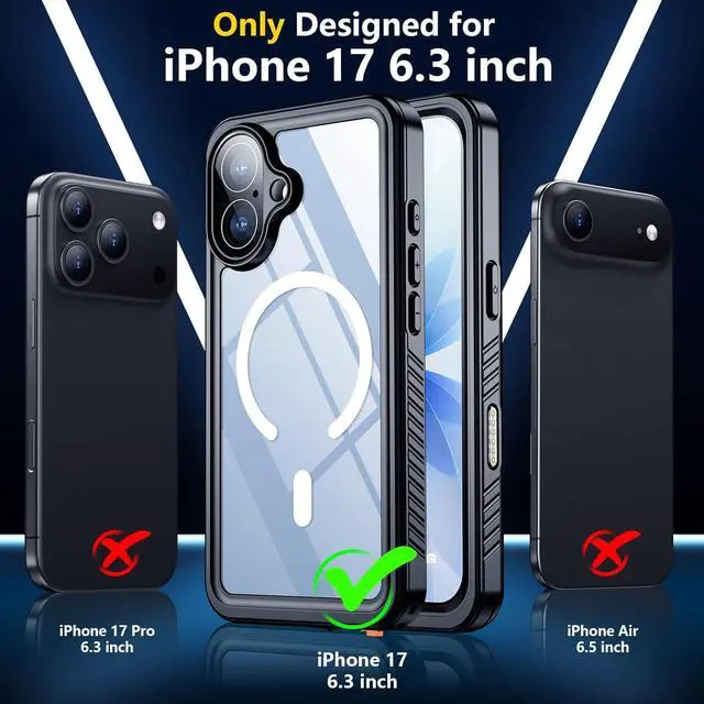 Perfect Compatibility & Strong Magnetic AttractionOnly compatible with iPhone 17 6.3 inch. Precise cutouts for easy access to all ports buttons sensors and cameras. The SPIDERCASE waterproof case for iPhone 17 features an upgraded magnetic ring enhancing compatibility and connection stability with most MagSafe accessories. It fully supports connecting with wireless chargers magnetic car mounts magnetic wallets power banks and more without losing protection. IP68 WaterproofIP68 Certified Waterproof case protect your phone from water. Waterproof up to 6.6 ft/2m underwater for 30 min. Perfect for any underwater activities outdoor sports and daily use.