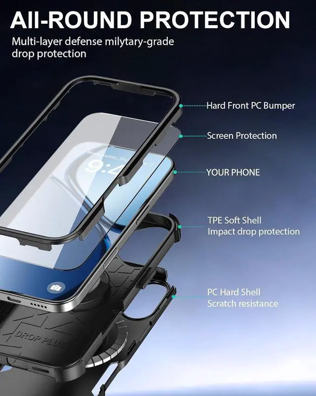 Rugged Multi-Layer Defense: Featuring 3-layer construction with a rigid shell and internal rubber layer rigorously tested to ensure 6x total protection on all sides with high-quality rubber that absorbs shock to protect your iPhone 178 from scratches and drops.