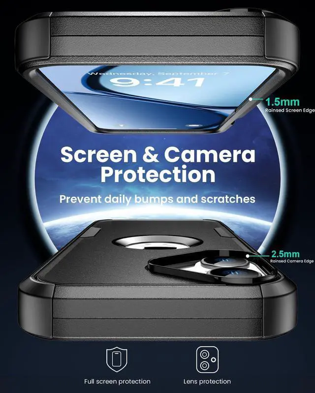 Stronger Magnetic Lock: Powerful built-in magnets easier place-and-go wireless charging and compatible with MagSafe accessory. Raised Camera & Screen ProtectionRaised 2.5 mm lens edges & 1.8 mm screen edges protect your camera and screen against scratches and drops. Screen protector is rigid but ultra-thin comfortable and sensitive touch make you feel nothing on screenPrecise Buttons & Secure Gripfull functionality maintained via precise speaker and port cutouts and easy-press buttons. The unique frosted texture effectively resists fingerprints and smudges and prevents slipping from your hands.