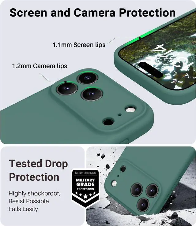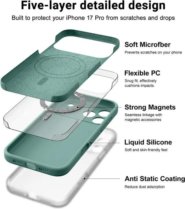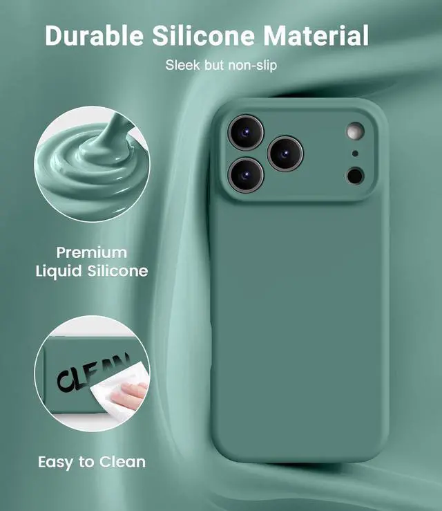 COMPATIBILITY Upgraded Design Liquid Silicone iPhone 17 Pro case non-slip shockproof anti-fingerprint easy to clean. Compatible with wireless charging and MagSafe accessories. TRUSTWORTHY QUALITY Made with Genuine Liquid Silicone and PC. Soft microfiber lining inside keeps the back of your phone scratch-free. Lightweight and slim design. INTEGRATED CAMERA CONTROL BUTTON Integrated full-soft silicone buttons deliver better feel and grip for your iPhone 17 Pro case look more streamlined and luxurious while maintaining seamless Capture Button functionality. EXTRA PROTECTION Compared with the traditional cell phone case for iPhone 17 Pro this case fully covers the camera and has 1.2 mm raised lips to protect the iPhone 17 Pro screen.
