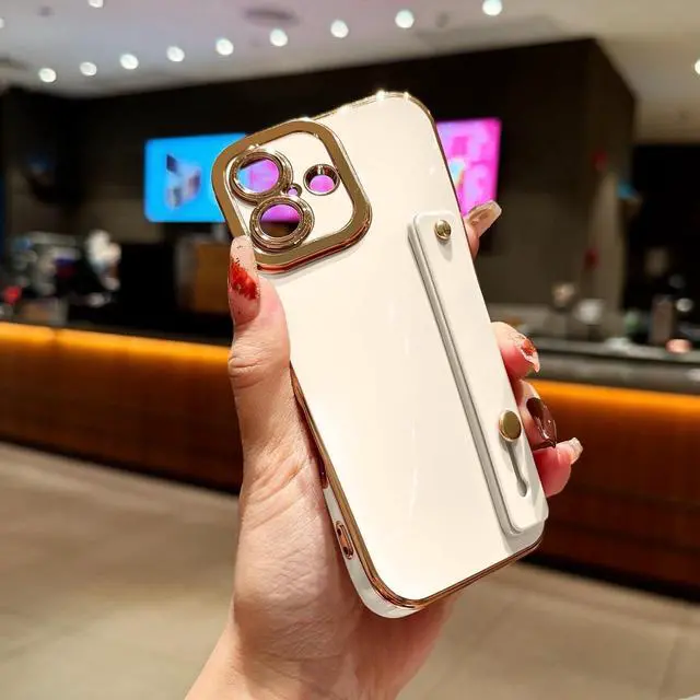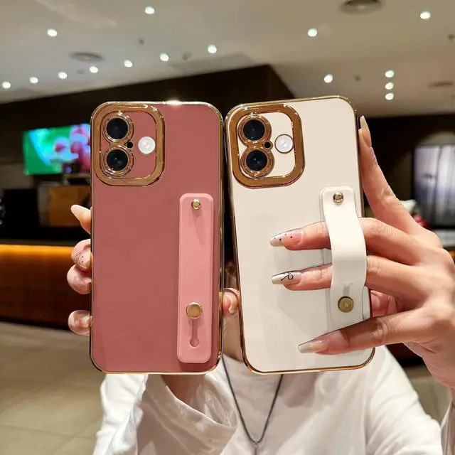 [Compatible Models]This deluxe plated edge bumper is designed for iPhone 17 and is only available for iPhone 17 not compatible with any other models. Please confirm your phone model before purchase. [Luxurious and Exquisite Electroplating Process]This soft TPU phone cover has plating technology on the edge of the frame camera lens edge and buttons. The gold frame edge makes the case more colorful and layered and makes the phone look more stylish luxurious beautiful and elegant. With its slim profile and comfortable touch you can have a unique and high quality phone case. [Useful Wrist Strap Kickstand]This neutral minimalist and stylish phone case features a TPU+PC wrist strap that can be looped around your fingers for a more secure grip or used as a stand.