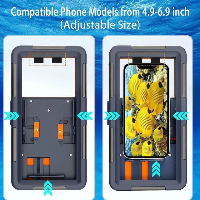 How the waterproof case works: Your phone's volume buttons can take picture, our diving case is to complete the photo by touching the volume button by moving inside, and there is a touch switch on the side