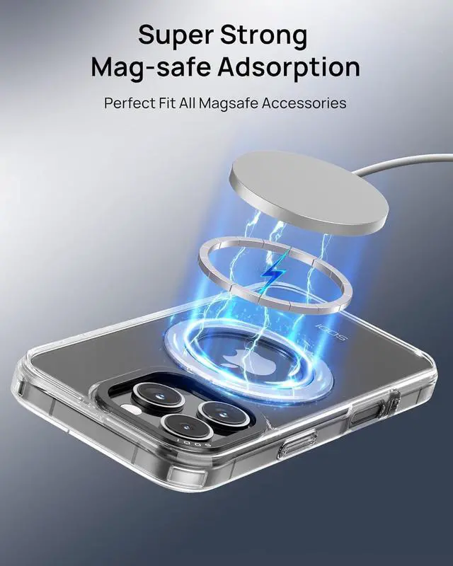 SUPER STRONG ADSORPTION: The case not only mates with all Mag-Safe accessories but also offers a safer and more stable charging experience.It locks firmly in place, eliminating any unwanted shifting. This means you can charge your device worry-free, whether it's on your nightstand or desktop, ensuring a seamless power-up every time.