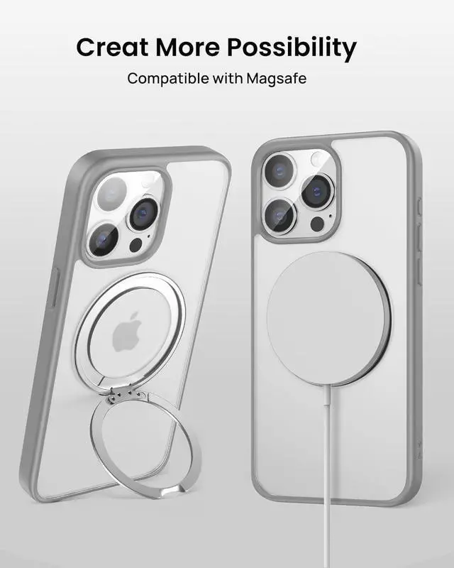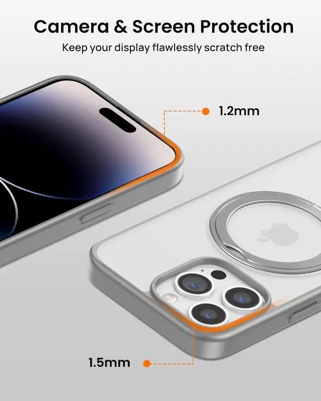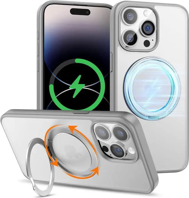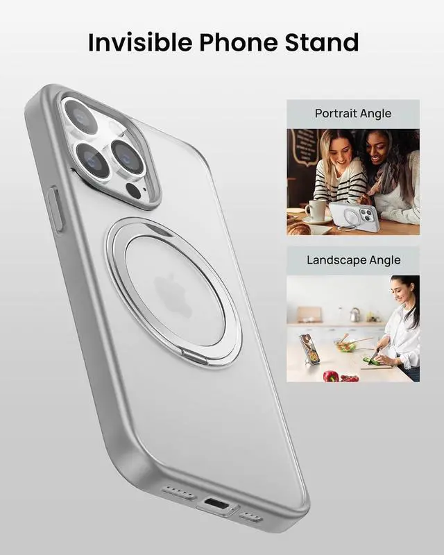 360° Rotatable Ring & Flexible Kickstand The embedded 360° rotatable magnetic ring holder is great for selfies, watching reels, shorts, Facetime. Great for watching videos vertically or horizontally etc. This iPhone 14 Pro phone case offers both a mag ring and a kickstand capability.