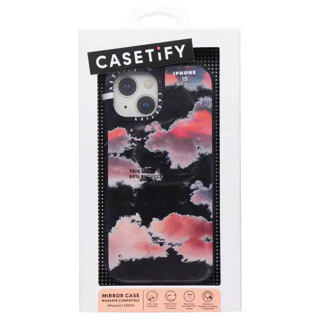 The CASETiFY Mirror Case for MagSafe for iPhone 15. Clouds version.