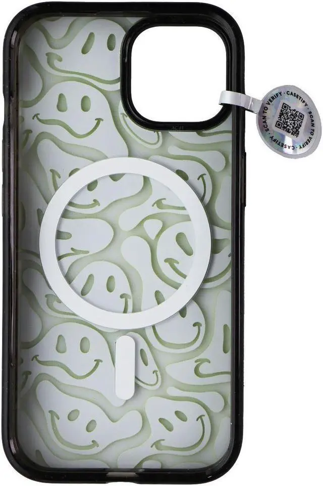The Casetify Impact Series Case for MagSafe for iPhone 15. Acid Smiles Neon Green version.