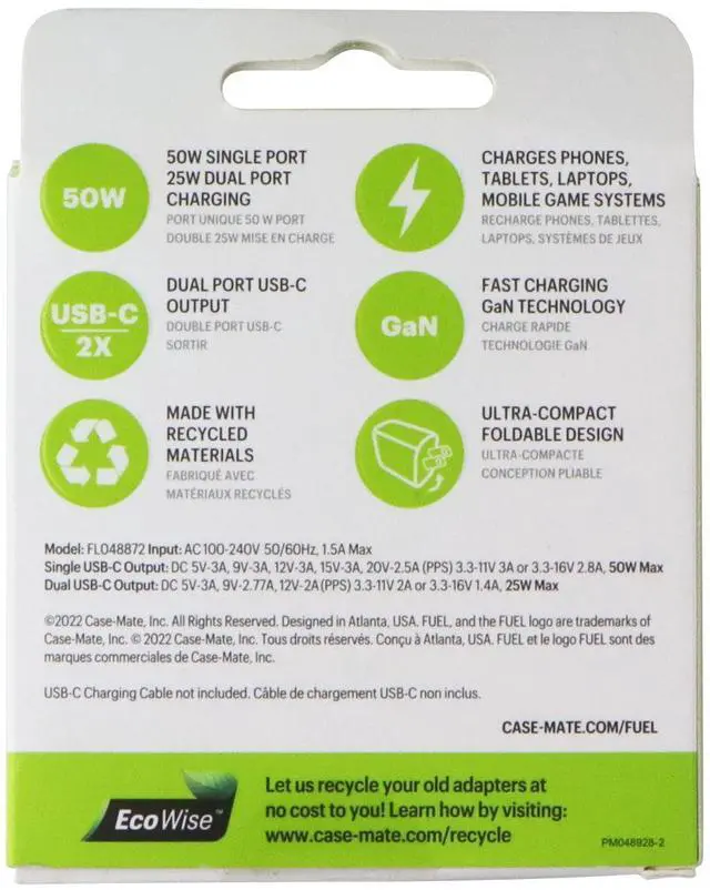 FUEL (50W) Fast Charge Power Adapter with Dual USB-C Ports - White