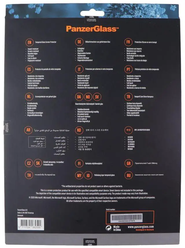 PanzerGlass Tempered Glass Screen Protector for Microsoft Surface Laptop Go. Features:Impact-resistantScratch-resistantFull touchEasy to attachFingerprint-resistant