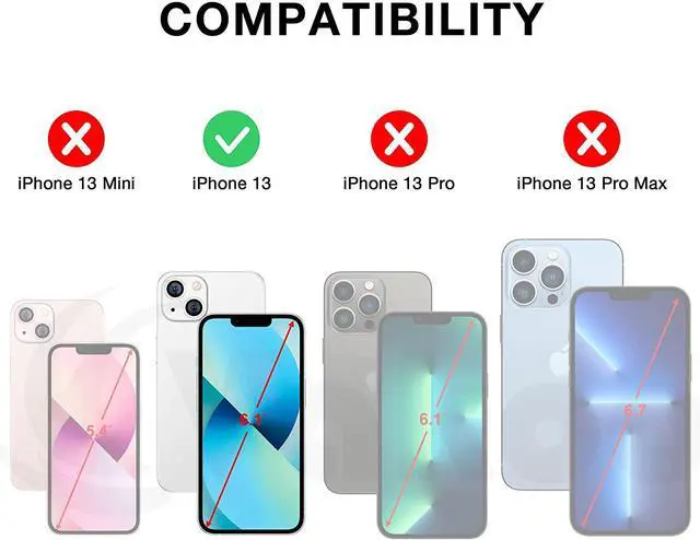 Compatible withThis iPhone 13 clear case is designed for iPhone 13 6.1 inch. Every buttons are easy to press and all holes line up perfectly.Any iPhone 13 phone case issues, please contact us.